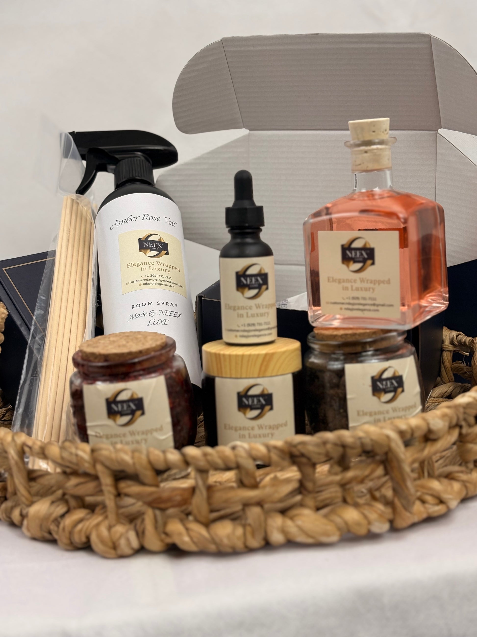 The NEEX LUXE Luxury Home Fragrance Gift Basket is a beautifully curated set featuring our signature home fragrance essentials, thoughtfully arranged and wrapped for a refined gifting experience.